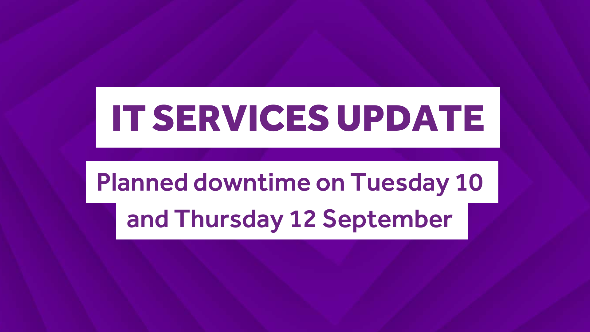 IT Services need to perform critical planned maintenance in readiness for Start of Year. All efforts will be made to complete the work as quickly as possible but please remember to plan ahead.